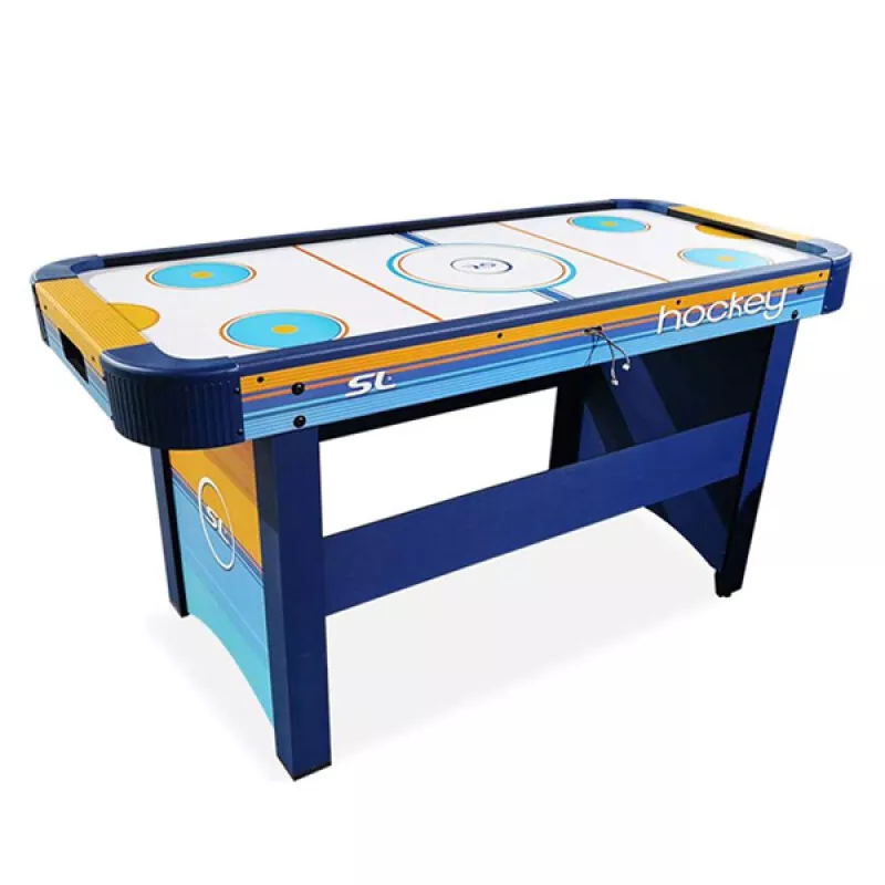 Աէրոհոկեյի այս սեղանն ունի հիանալի գունեղ գրաֆիկա, որը նոր շունչ կհաղորդի ձեր խաղասենյակին։ Պատրաստված է խիտ փայտի մանրաթելից՝ L-աձև ոտքերով և կարգավորվող հարթաչափերով: CUL-ի կողմից հավաստագրված էլեկտրական փչակները օդի մշտական հոսքն ուղղում են սեղանի վրա, որն ապահովում է խաղի սահուն ընթացքը։ Օժտված է նոր, ավելի կայուն էլեկտրոնային հաշվիչով։
