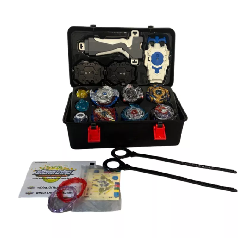 Մանկական Beyblade Box խաղալիքների հավաքածու։ Պատրաստվեք ճակատամարտին այս Beyblade Box խաղալիքների հավաքածուի միջոցով, որը ձեր երեխաներին կզվարճացնի ամբողջ օրը: Խաղացողները պետք է Beyblades-ին դուրս նետեն ասպարեզից կամ գերազանցեն նրանց պտտվող պայքարում 6+ տարեկանից բարձր երեխաների համար Ներառում է 6 Beyblade՝ հոլ 2 Պլաստիկ փոքր հոլեր․․․ 2 գործարկիչ 2 Էլեկտրական շրջանակ 1 Գործարկիչի բռնակ