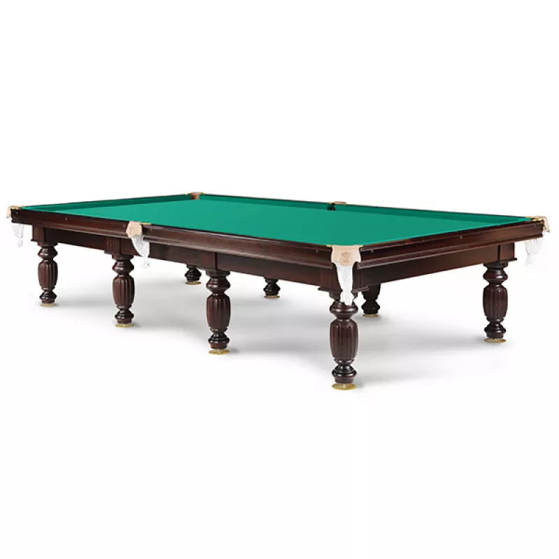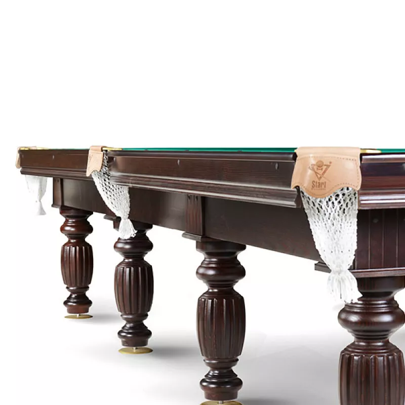 Ռուսական պիրամիդա տեսակի բիլիարդի սեղան «Դոմաշնի լյուքս» (10ft) «Դոմաշնիյ Լյուկս» բիլիարդի սեղանի Էսթետիկ տեսքը յուրաքանչուր ինտերիերի իդեալական լրացում է: Սեղանն ունի մեծ, դեկորատիվ փայտե ոտքեր, որոնք ապահովում են սեղանի ամրությունը: Արտաքին տեսքը ամբողջացնում են խնամքով ընտրված դետալները: Մանրամասներ Դաշտի չափսը` 284x142x80 սմ (10ft) Խաղադաշտ` լամինատ (16 մմ) Կտոր՝ Galaxy Lux (գույնը Yellow green) Գրպանիկներ՝ Սիլյումինե (ոսկեգույն), ձեռագործ կաշվով, բամբակյա ցանցով Հարվածամեղմիչներ՝ Start Super Pro (U-118) Քաշ` 180 կգ Ոտքերի քանակ՝ 6 Հենակներ՝ մետաղական (ոսկեգույն, 140 մմ)