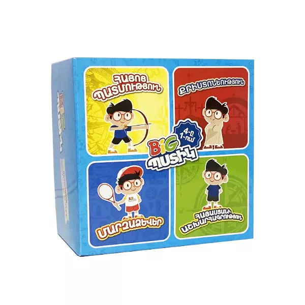 BIG Պստիկ 4-ը 1-ում խաղը նախատեսված է 6 տարեկանից բարձր՝ կարդալ իմացող փոքրիկների և մեծերի համար: Այն ավելի հետաքրքիր է հատկապես 8-12 տարեկան երեխաներին։ Զարգացնում է երեխայի գիտելիքները աշխարհագրության, հայոց պատմության, քրիստոնեության և տարբեր մարզաձևերի վերաբերյալ: