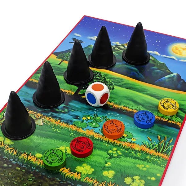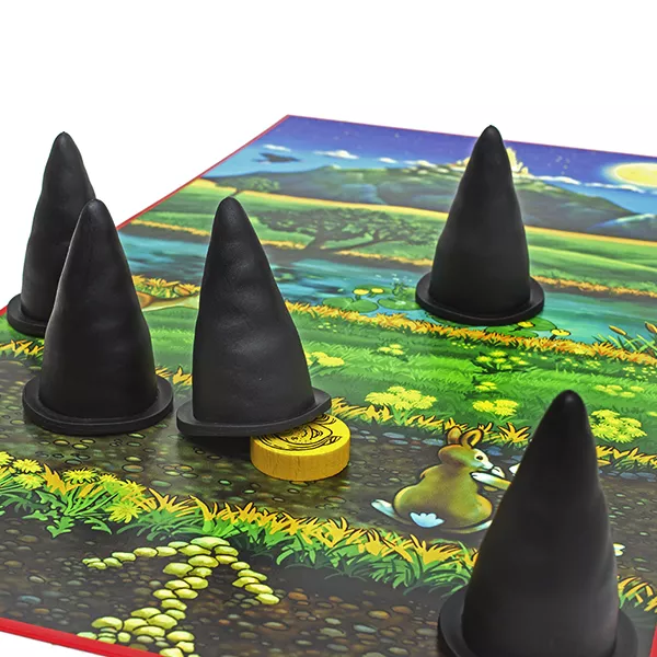 Հինգ փոքրիկ կախարդներ թաքնվում են մեծ սև գլխարկների տակ: Եթե հիշում եք, թե որ գլխարկների տակ է թաքնվել նշված գույնի կախարդն, ապա նա կարող է մեկ քայլ մոտենալ սարի գագաթին։ Եթե դուք սխալվում եք, հերթը անցնում է հաջորդ խաղացողին: Իսկ երբ զառն ընկնում է պատկերված սլաքների կողմով, ապա 2 գլխարկ տեղերով փոխվում են։ հաղթում է նա, ով առաջինն է կախարդներից մեկին բերում է լեռան գագաթ։