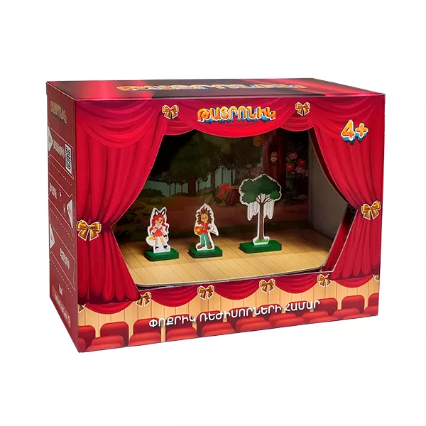 Բարի գալուստ«Թատրոնիկ»-ի կախարդական աշխարհ: Սեղանի թատրոնը կոմպակտ բեմ է, որի վրա ծավալվում են բազմազան պատմություններ: Երեխաները միաժամանակ դառնում են ռեժիսոր, դերասան և հանդիսատես: Նրանք կարող են բացի նախապես ձայնագրված ներկայացումները, ստեղծել նաև իրենց սեփական փոքրիկ ներկայացումները: