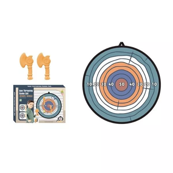 Սա ոչ միայն խաղալիք է, այլ իսկական մարտահրավեր ձեր երեխայի համար: Այս հավաքածուի միջոցով ձեր երեխան կսովորի ճշգրտություն , զարգացնում է համակարգումը և իրավիճակներին արագ արձագանքելու կարողությունը: Կացին նետելը երեխաների ճշգրտությունն ու համակարգումը զարգացնելու զվարճալի միջոց է: Հավաքածուն ներառում է 56 սմ տրամագծով թիրախ և երկու անվտանգ պլաստիկ կացին, որը հատուկ նախատեսված է խաղերի համար։ Թիրախը վառ է ու նկատելի, ինչն էլ ավելի հետաքրքիր ու հուզիչ է դարձնում խաղի ընթացքը։ Այս հավաքածուն կատարյալ է բացօթյա գործունեության կամ բակում խաղալու համար: Նետելու խաղը ոչ միայն զարգացնում է ֆիզիկական հմտությունները, այլ նաև օգնում է զարգացնել կենտրոնացումը և համբերությունը: Այս հավաքածուն հիանալի նվեր կլինի ակտիվ խաղերի սիրահարների համար:,