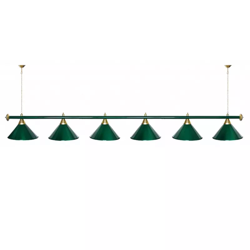 Բիլիարդի սեղանի ջահ՝ 6 լուսամփոփով, նախատեսված 12 ֆուտ սեղանների համար։ Ամրացվում են պոլիմերային ծածկույթով ամբողջական մետաղյա ձողի վրա։Շղթայի երկարությունը 100 սմ է, այն ապահովում է օպտիմալ հեռավորություն լույսի և սեղանի միջև։Մանրամասներ Գույնը՝ կանաչ Ջահի ընդհանուր բարձրությունը՝: 1420 մմ Ձահի ընդհանուր երկարությունը՝ 2920 մմ Լուսամփոփի տրամագիծը՝ 370 մմ Լուսամփոփի նյութը՝ մետաղ Ձողի նյութը՝ մետաղ Լամպի ամրացման հատվածը՝ կերամիկական Լամպի մաքսիմալ հզորությունը՝ 60 վտ Էներգախնայող լամպի մաքսիմալ հզորությունը՝ 25 վտ Սնուցում՝ 220 В, 50 Гц Շղթայի երկարությունը՝ 100 սմ