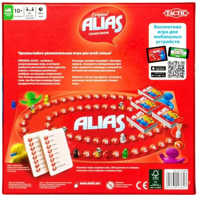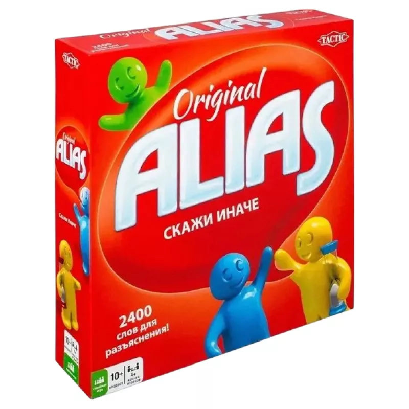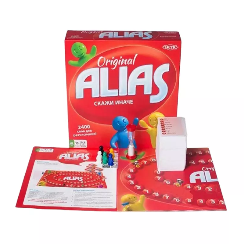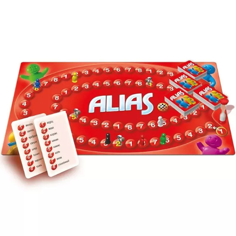 Ալիասը խաղում անհրաժեշտ է լուծվող բառը բացատրել այլ կերպ: Խաղն անցկացվում է ժամանակի դեմ. որքան շատ բառեր կռահի թիմը, այնքան ավելի շատ միավորներ կստանա: Բառը բացատրելիս կարելի է օգտագործել հոմանիշներ և հականիշներ, գլխավորը նույն արմատով բառեր չօգտագործելն է։ Խաղն ունի 300 քարտ՝ լուծելու 2400 բառ և արտահայտություն: