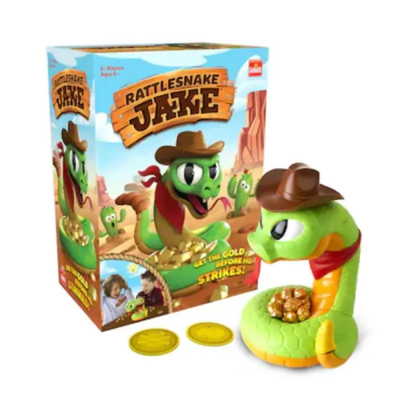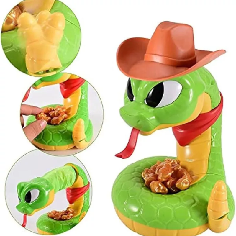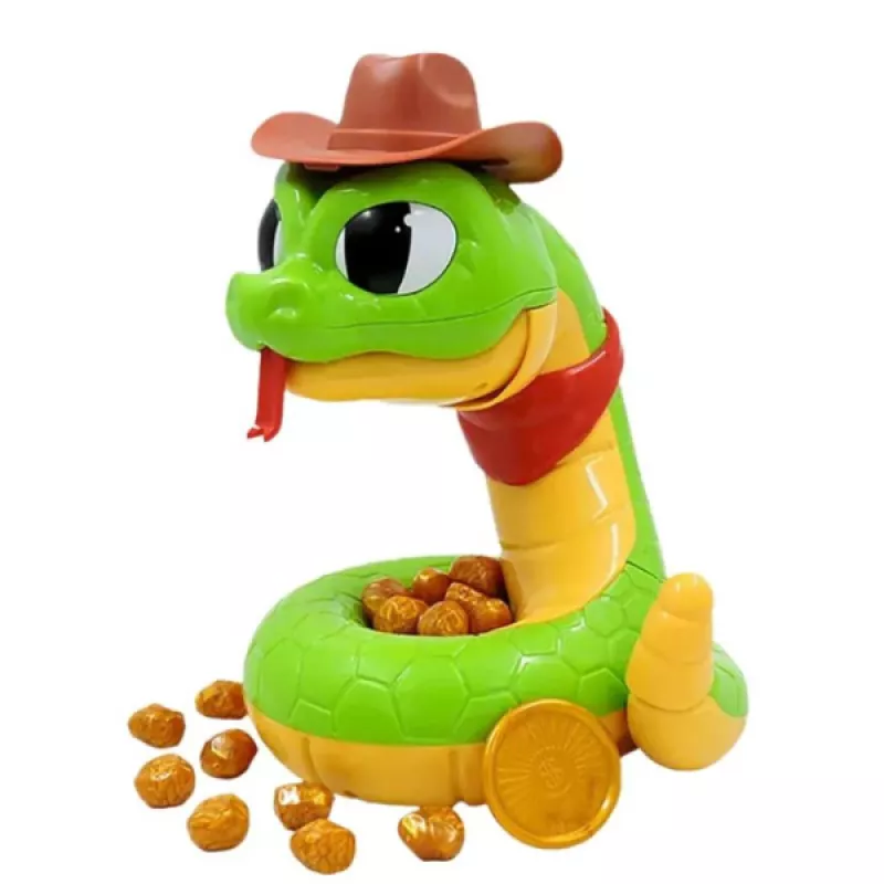 Զգուշորեն վերցրու մետաղադրամները Խայթող օձ` Մայքի մոտից: Մեկ սխալ քայլ, և Մայքը կարող է խայթել քեզ: Հաղթում է այն խաղացողը, ով վերջում ամենաշատ ոսկին է հավաքել: Ներառում է՝ 1 օձ: 1 կովբոյ գլխարկ: 1 հաջողակ մետաղադրամ: 16 ոսկե ձու: Նյութ՝ Պլաստիկ ?Լիցքավորվում է՝3 AAA մարտկոցներով