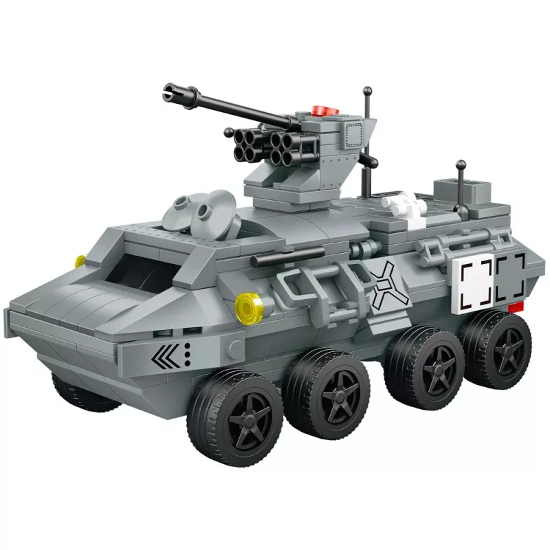 Կազմակերպեք իրական ռազմական մարտեր՝ ձեր իսկ պատրաստած զրահափոխադրիչով: Ոչ պակաս հետաքրքիր են ինչպես զրահափոխադրիչի կառուցման գործընթացը, այնպես էլ խաղալիքի օգտագործումը հետաքրքիր խաղերի համար: Զրահափոխադրիչի հավաքման բոլոր փուլերը մանրամասն նկարագրված են հավաքման կանոնների գրքույկում: Կոնստրուկտորի մասերը ամուր միանում են և հեշտությամբ բաժանվում, ինչը հավաքման ընթացքն առավել հաճելի է դարձնում: Այն երեխայի մոտ զարգացնում է ստեղծագործական մտածողությունը և տարածական երևակայությունը: Ներառում է 350 մասնիկ Հավաքման կանոններ Մանրամասներ Տարիքը՝ 6+ Տուփի չափսերը՝ 42x5x29 սմ Քաշը՝ 0,6 կգ