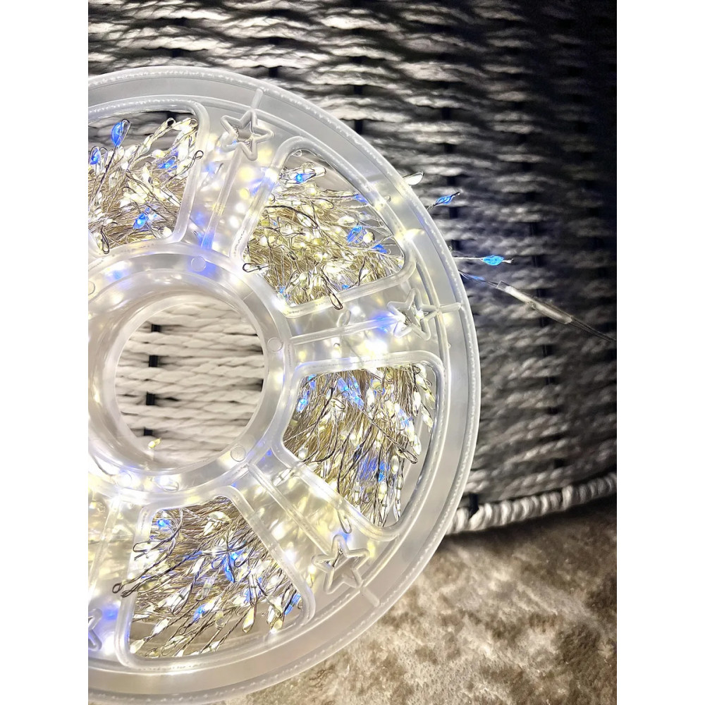 Լույս ամանորյա 900 լամպ LED 2 երանգ (սպիտակ դեղին) արծաթե մետաղալար 30մ-ոց հեռակառավարմամբ