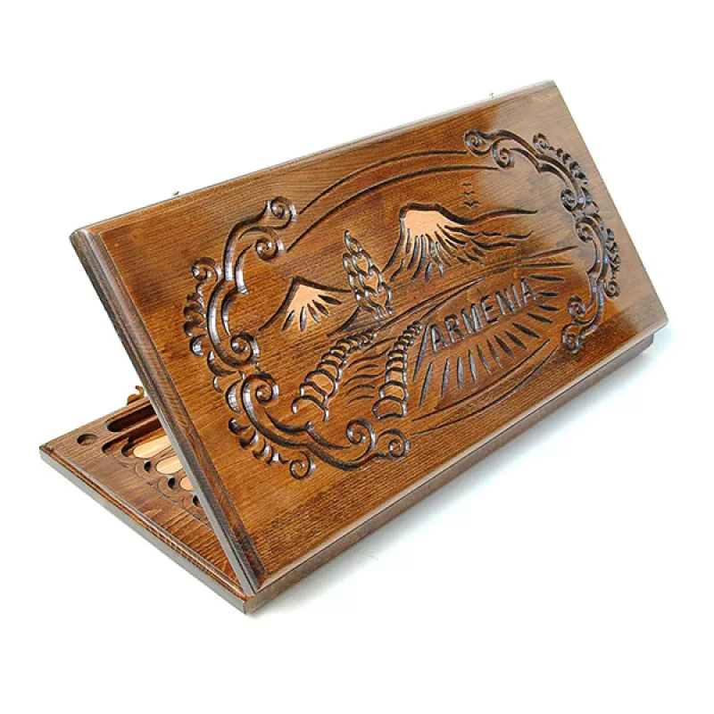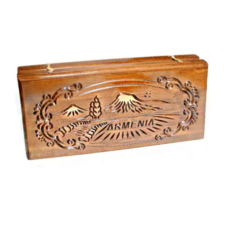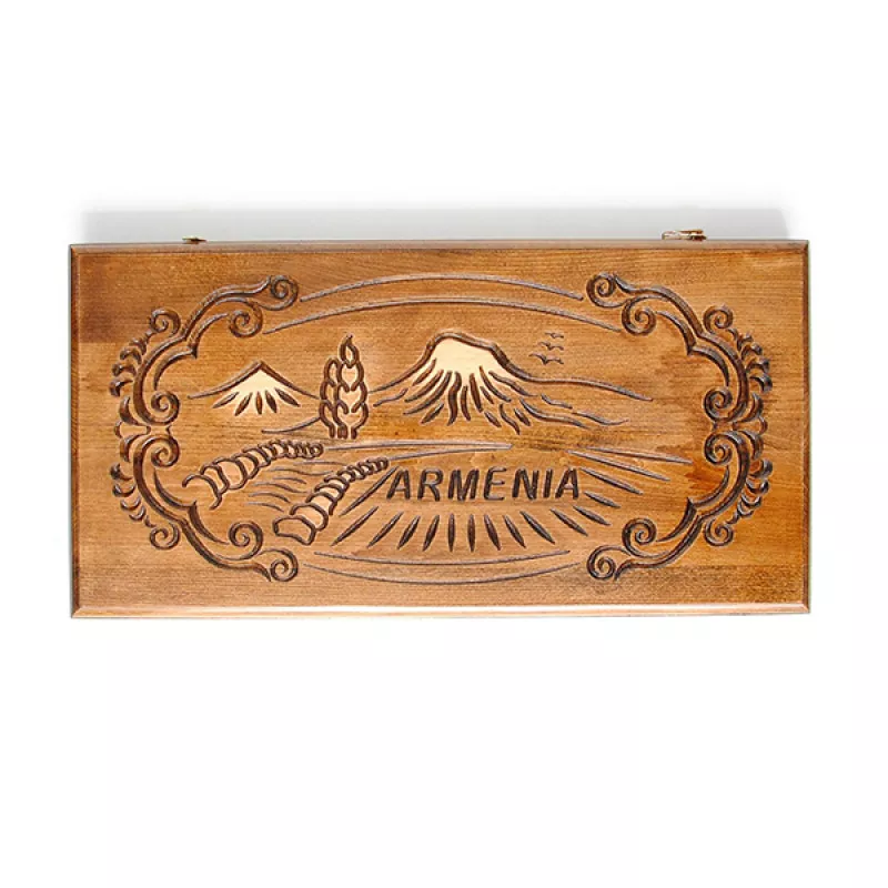 Ձեռքի աշխատանք։ Պատրաստված է հաճարենու մեկ զանգված փայտից, լաքապատ է, ծխնիներն ու փականները ձուլված են բրոնզից: Մանրամասներ Չափսերը՝ 60x60x3 սմ Փայտը՝ Հաճարենի Հեղինակ և Արտադրող Արտադրված է Հայաստանում Արտադրող՝ Woodzone