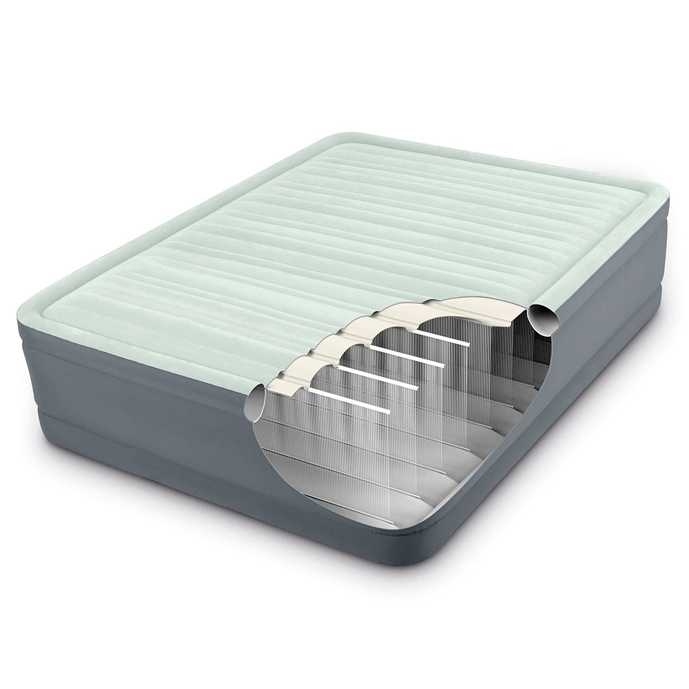 Надувная двуспальная кровать премиум класса серии PremAire I изготовлена по технологии Fiber-Tech. Внутренние перегородки сделаны из множества полиэфирных волокон, за счет чего кровать становится намного прочнее и легче. Поперечное расположение ребер жесткости придает кровати необходимую твердость и упругость.