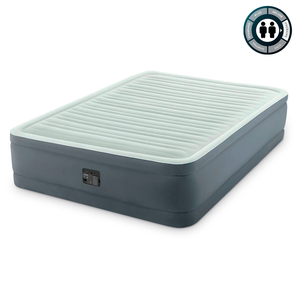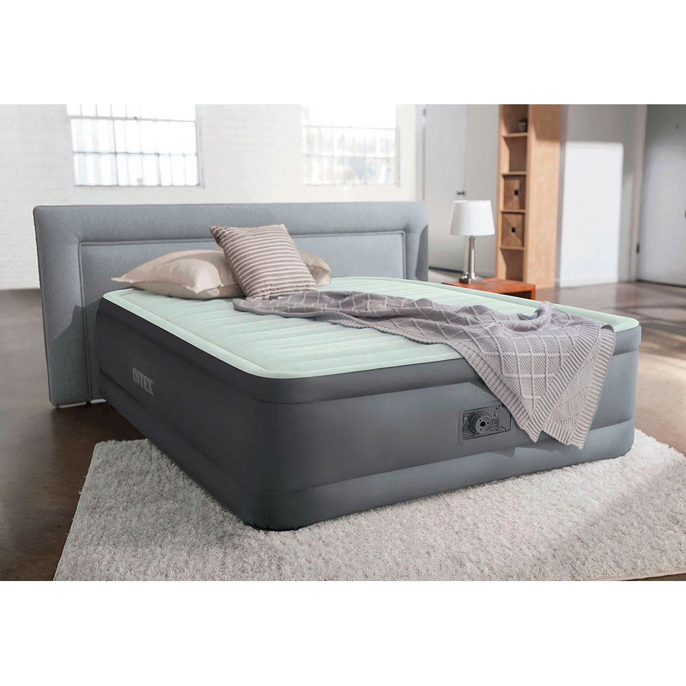 Встроенный электронасос позволяет быстро надувать и сдувать кровать и дает возможность отрегулировать ее упругость. Чтобы отрегулировать степень упругости кровати, на моторном отсеке присутствует специальная кнопка.