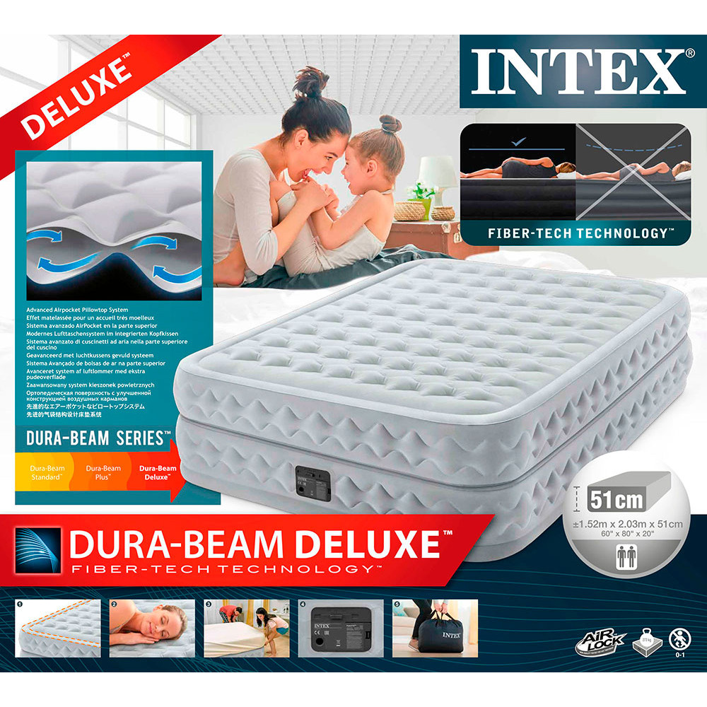 Двуспальная надувная кровать серии Dura Beam изготовлена по технологии Fiber-Tech. Внутренние перегородки сделаны из множества полиэфирных волокон, за счет чего кровать становится намного прочнее и легче.