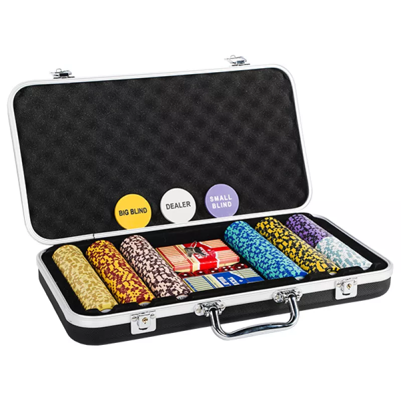 Պոկերի պրոֆեսիոնալ հավաքածու «Ռոյալ» Հավաքածուն պարունակում է պոկեր խաղալու համար անհրաժեշտ բոլոր պարագաները հավաքված գեղեցիկ ABS քեյսում: Հավաքածուն համալրված է պրոֆեսիոնալ, բարձրակարգ ծանր չիպերով` 14 գրամ քաշով: