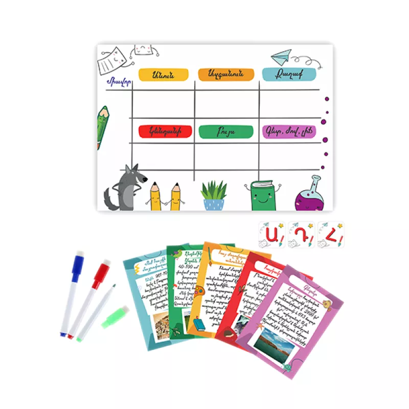 Խաղացողներից մեկը պատահականության սկզբունքով քաշում է տառերից մեկը։ Խաղացոների խնդիրն է հնարավորինս արագ լրացնել տախտակների վրա նշված սյունակները՝ համապատասխան տառով սկսվող անվանումներով։ Դուք կարող եք լրացնել սյունակները ցանկացած հերթականությամբ։ Երբ խաղացողներից մեկը վերջացնում է լրացնելը անմիջապես ասում է վերջ։ Մյուս խաղացողները դադարեցնում են գրելը և սկսում են միավորների հաշվարկը։