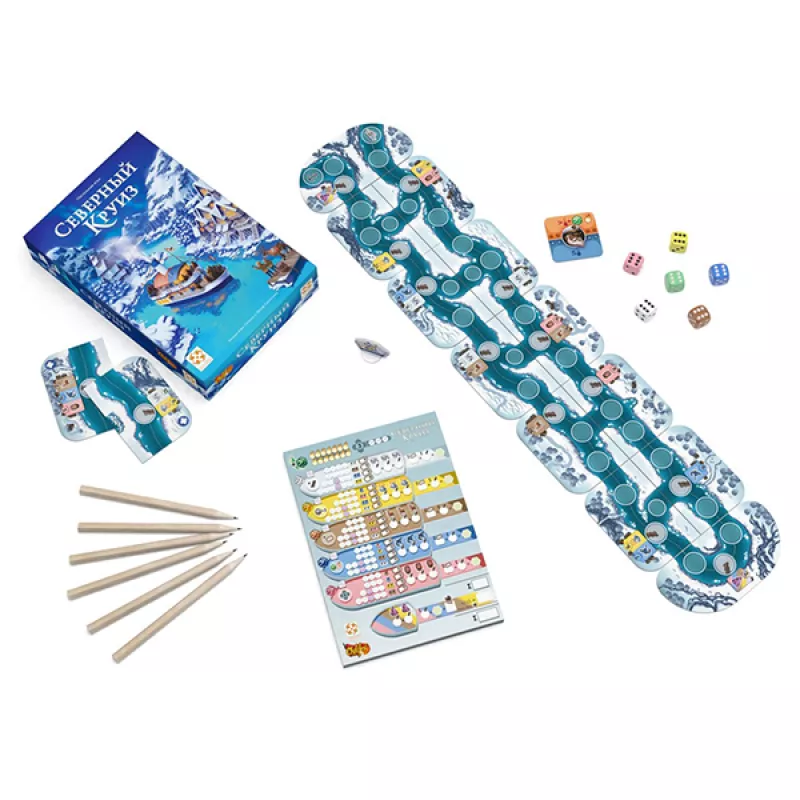 «Հյուսիսային նավարկություն»-ը խաղ է Roll'n'Write մեխանիկայով, այսինքն՝ դուք պետք է գլորեք զառերը և, կախված ընկած արժեքներից, գծեք ամենաօպտիմալ երթուղիները ձեր անձնական թերթիկի վրա: Միայն ի տարբերություն այս մեխանիզմով այլ խաղերի, այստեղ խաղադաշտը մոդուլային է, որը կազմում եք այնպես, ինչպես ցանկանում եք, նախքան խաղը սկսելը: Ներառում է 14 գետի սալիկ Կապիտանի նշան Նավի չիպ՝ պլաստիկ տակդիրով 6 գունավոր խորանարդ 6 մատիտ Խաղի թերթիկներ Խաղի կանոններ Մանրամասներ Տարիքը՝ 10+ Լեզուն՝ Ռուսերեն Խաղացողների թիվը՝ 1-6 Խաղի տևողությունը՝ 15-25 րոպե Տուփի չափսերը՝ 160x230x40 մմ Հեղինակ և Արտադրող Թողարկման տարեթիվ՝ 2022թ Արտադրող՝ Life Style
