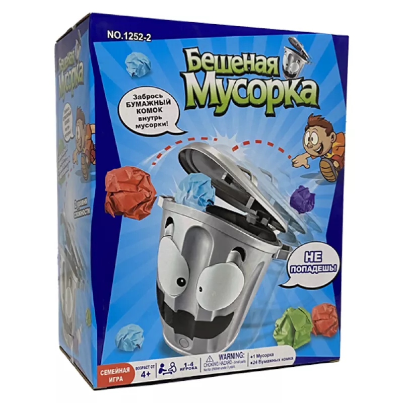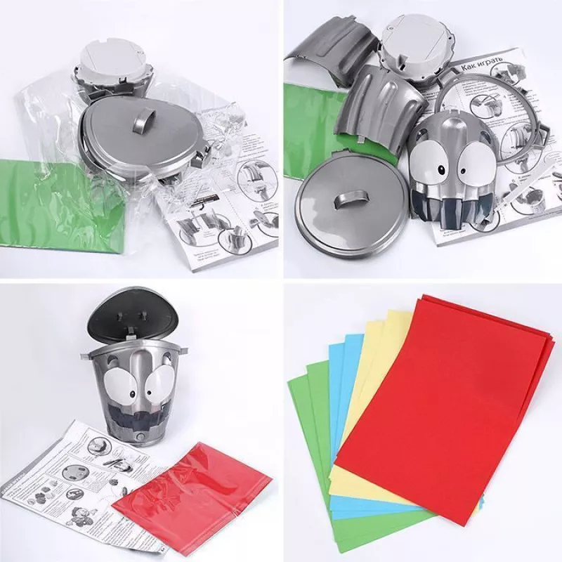 Այսպիսի ժամանցը հիանալի կերպով կլրացնի ցանկացած հավաքույթ, իսկ մեծ աչքերով ու լայն ժպիտով դույլի դիզայնը հաճույք կհաղորդի խաղին։ Բացի այդ, խաղը ոչ միայն զվարճալի է, այլև օգտակար, քանի որ այն օգնում է զարգացնել ճշգրտությունը և համակարգումը: Խաղի կանոնները պարզ են՝դույլն արագ շարժվում է, հասցնել բռնել աղբարկղը և կարողանալ մի կտոր թուղթ գցել դրա մեջ: Սա այնքան էլ պարզ չէ, քանի որ մեր դույլը շատ ճարպիկ է և խորամանկ: Այն փախչում է անկանխատեսելի հետագծով, փակում և բացում է կափարիչը, երբ ուզում է, և տարբեր արագություններով (երկու ռեժիմ): Կարող է խաղալ ցանկացած թվով խաղացող, հավաքածուն ներառում է 4 գույնի թուղթ չորս մասնակցի համար: Դուք կարող եք հաշվել ձեր գույնի կտորների քանակը և որոշել մրցույթի հաղթողին: Հաղթում է նա, ով կարող է ամենաշատ աղբը նետել դույլի մեջ։ Բեռնարկղը աշխատում է չորս AA 1.5 V մարտկոցով (ներառված չէ): Ներառում է Էլեկտրոնային աղբաման 24 գունավոր թուղթ Մանրամասներ Լայնությունը 180 մմ Երկարությունը 210 մմ Քաշը 400 գ Նյութը՝ ստվարաթուղթ, պլաստիկ Տուփի չափսերը 21x18x15