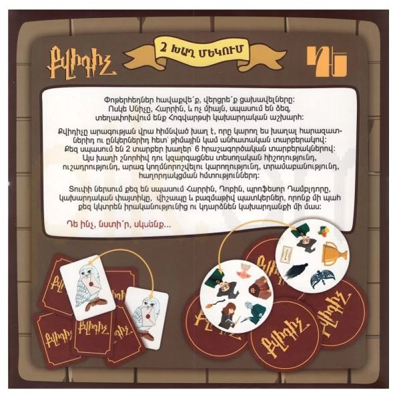 Տուփի ներսում քեզ են սպասում Հարրին, Դոբին, պրոֆեսոր Դամբլդորը, կախարդական փայտիկը, վիշապը և բազմաթիվ պատկերներ, որոնք մի պահ քեզ կկտրեն իրականությունից ու կդարձնեն կախարդանքի մի մաս։
