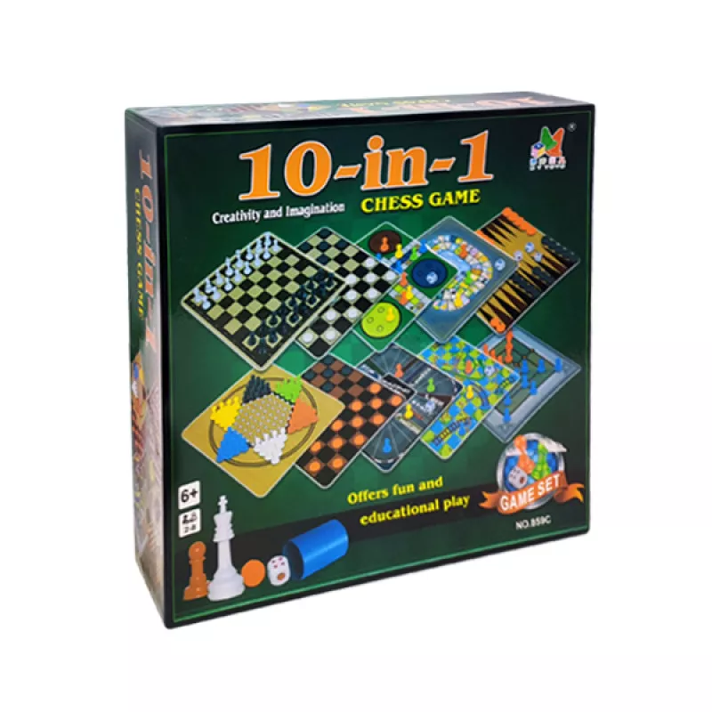 10 տարբեր խաղերի հավաքածու՝ ներառյալ շախմատ, շաշկի, տարբեր ազարտային սեղանի խաղեր: Սա կատարյալ հավաքածու է ընտանիքի և ընկերների հետ հետաքրքիր ժամանակ անցկացնելու համար: Տուփում ներառված են տարբեր նախասիրության խաղեր։ Ներառում է 5 երկկողմանի խաղադաշտ Շախմատ՝ 32 խաղաքար Չիպեր՝ 45 հատ (15 կարմիր, 15 սպիտակ, 15 սև) Դեղին խաղաքարեր` 10 հատ Կանաչ խաղաքարեր՝ 10 հատ Կարմիր խաղաքարեր՝ 10 հատ Կապույտ խաղաքարեր՝ 10 հատ Սպիտակ խաղաքարեր՝ 10 հատ Սև խաղաքարեր՝ 10 հատ Զառ՝ 3 հատ Պլաստմասե գլանակ՝ 1 հատ Մանրամասներ Տարիքը՝ 6+ Խաղացողների թիվը՝ 2-8 Խաղադաշտի չափերը՝ 15x15 սմ Տուփի չափսերը՝ 16.2x16.2x5.2 սմ