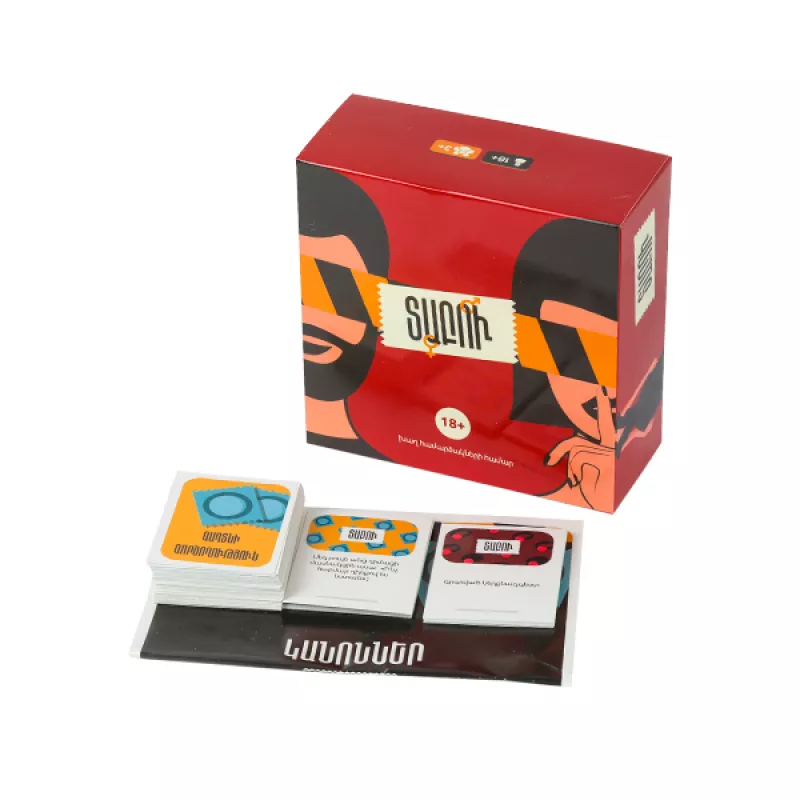 Սա նոր՝ համարձակ, նմանը չունեցող զվարճալի խաղ է, որը գալիս է կոտրելու բոլոր տաբուներն ու նոր ծունչ բերելու խաղային իրականություն։ Սա արգելվածի մասին խոսելու, ժամացը լրացնելու և միմյանց բացահայտելու թեժ տարբերակ է։ Պետք է խառնել խաղաքարտերը և հերթականությամբ կատարել դրանց վրա գրված առաջադրանքները կամ պատասխանել հարցերին։Խաղ՝ նաղատեսված համարձակների համար։Մանրամասներ Տարիքը՝ 18+ Լեզուն՝ Հայերեն Տուփի չափսերը՝ 17x17x7 սմ Խաղացողների քանակը՝ 3+ Ներառում է 200 խաղաքարտ 45 առաջադրանք 60 հարց 50 մնջախաղ 45 գաղտնի գործողություն Հեղինակ և Արտադրող Արտադրված է Հայաստանում Արտադրող՝ Dee Game