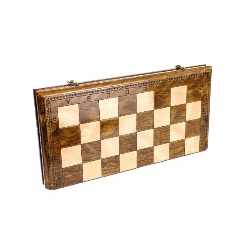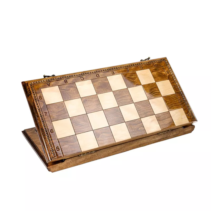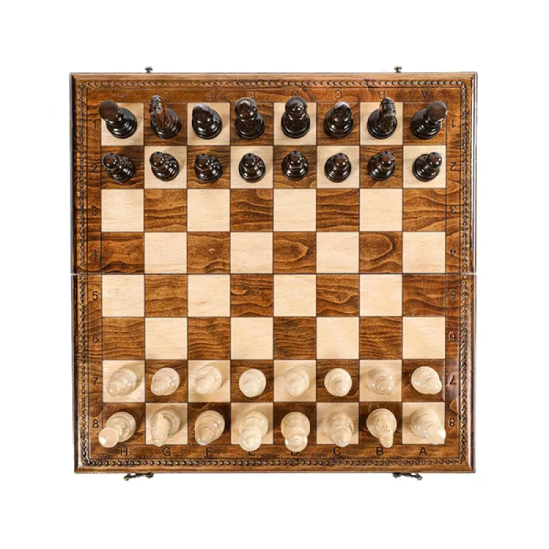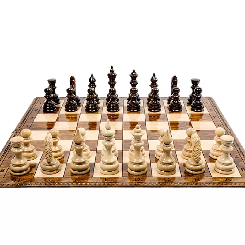 Այս դասական մոդելի շախմատը պատրաստված է հաճարենու մեկ զանգված փայտից։ Ամբողջությամբ ձեռագործ աշխատանք է: Լաքապատ է, թվերը և տառերը փորագրված են, ծխնիներն ու փականները ձուլված են բրոնզից;Ներառում է 32 խաղաքարեր Ֆիրմային պայուսակ