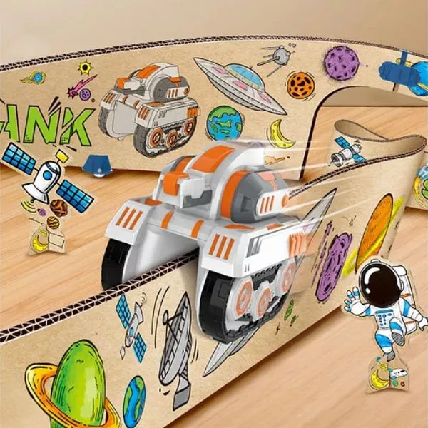 Տիեզերական մեքենա թղթե ուղիով․Երևակայությունն ու ստեղծագործականությունն մեկում՝ «Արա ինքդ ինքդ»։ Բացահայտեք տարածությունը առանց տնից դուրս գալու: Այս անհավանական ստվարաթղթե տիեզերանավը ձեռքով կառավարվող մեքենայով կատարյալ խաղալիք է երեխաների երևակայությունը և սովորելը խթանելու համար: Տիեզերական թեմայով նախագծված փոքրիկ արկածախնդիրները կարող են ստեղծել իրենց կարգավորվող ուղին` միաժամանակ զվարճանալով ուղու հավաքելով և սովորելով ֆիզիկայի և տիեզերքի հիմունքները: Կառուցման գործընթացի միջոցով երեխաները կզարգացնեն ձեռքի հմտություններ և կսովորեն ֆիզիկայի և տարածական ձևավորման մասին: