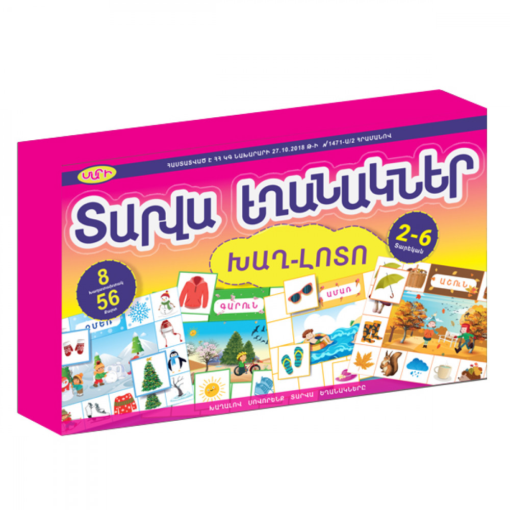 Ուսուցողական այս խաղը նախատեսված է նախադպրոցական և տարրական դպրոցի երեխաների համար: Խաղի նպատակն է խթանել էկոլոգիական դաստիարակության գործընթացը, զարգացնել կապակցված խոսքը, հարստացնել բառապաշարը: Խաղում կան տարվա եղանակների սյուժետային նկարներով A3 չափի 4 խաղադաշտեր և 56 նկարազարդ քարտեր, որոնցից յուրաքանչյուրը խաղացողները պետք է դնեն համապատասխան եղանակի խաղադաշտի վրա: Երաշխավորված է ԿԳՆ-ի կողմից: