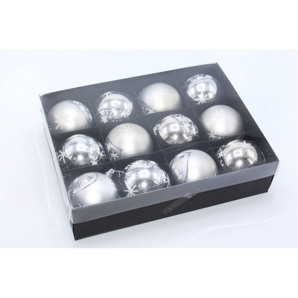 Տոնածառի խաղալիք8սմ-ոց 12հ-ոց սև տուփով, արծաթե գույն 3երանգի + նախշեր