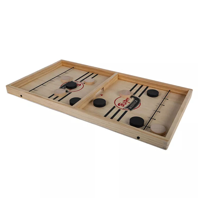Այս սեղանի խաղը բաղկացած է 54x30 սմ չափի փայտե հարթակից և փայտե տափօղակներից: Հարթակը բաժանված է երկու հավասար մասերի, որոնց մեջտեղում կա մի փոքր անցք, որի միջով պետք է անցնի տափօղակը: Հաղթում է այն մասնկիցը, ով առաջինը ռետինե ձգանի միջոցով բոլոր տափօղակները կուղարկի հակառակորդի կիսադաշտ: Մանրամասներ Տարիքը՝ 6 տարեկանից Խաղացողների քանակը՝ 2 Չափսը՝ 540x300x30 մմ