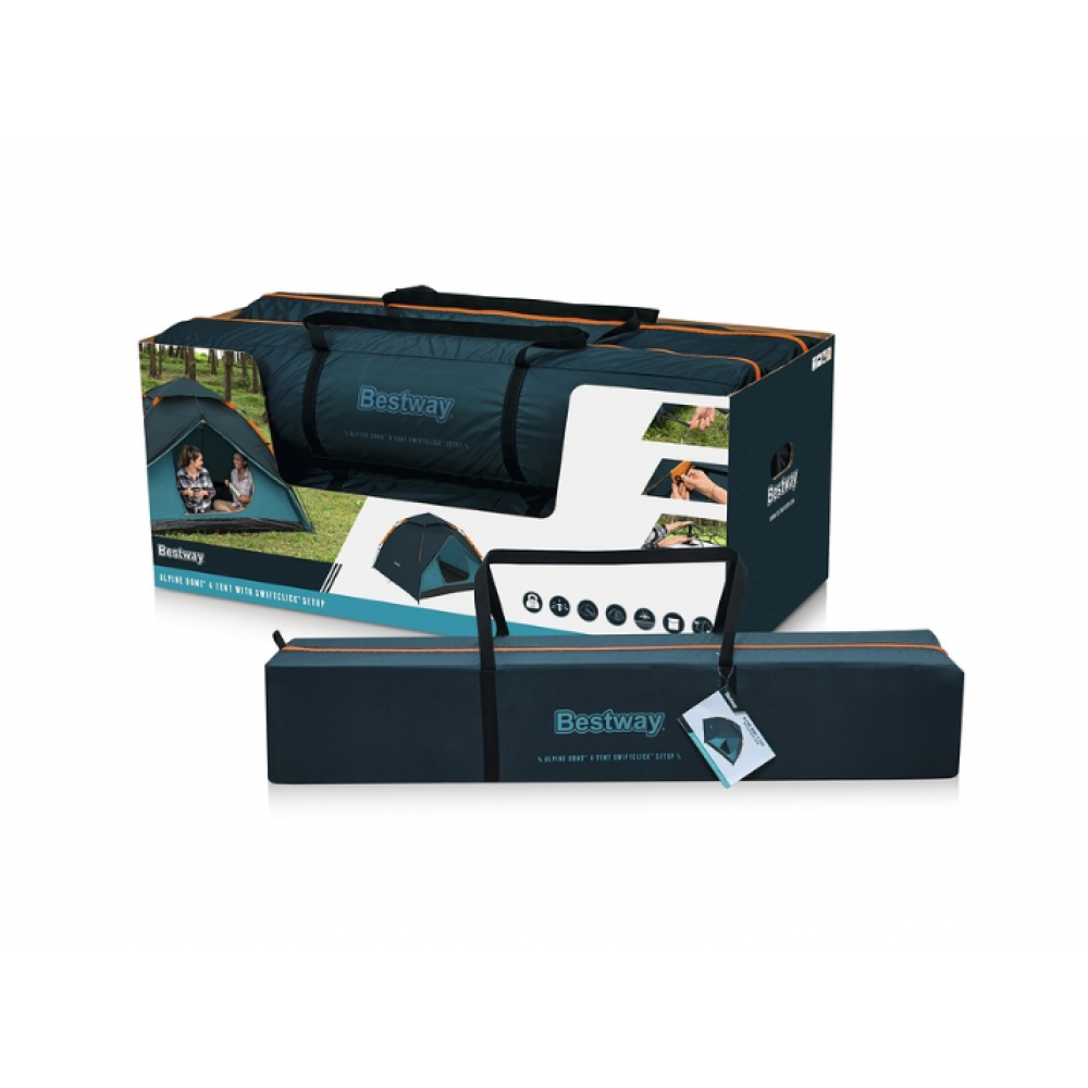 Палатка Bestway® Alpine Dome™ идеально подходит для отдыха на свежем воздухе и днем, и ночью. Благодаря системе мгновенной установки SwiftClick™ установка занимает всего 5 минут, поэтому вы и еще трое человек можете потратить меньше времени на установку и больше времени на отдых в тенистой, прохладной палатке на пляже или на открытом воздухе. Достаточно компактная, чтобы поместиться в багажнике автомобиля или прикрепиться к походному рюкзаку, беседка Alpine Gazebo станет незаменимым помощником для наблюдения за звездами на заднем дворе или походов на выходных. Палатка изготовлена из дышащей полиэфирной ткани 190T с водонепроницаемым и долговечным покрытием, а ее водостойкость составляет 2000 мм, поэтому вы можете чувствовать себя в безопасности во время кемпинга на открытом воздухе. Защитный слой грунта защищает палатку от влаги, воды и других воздействий. Воздухопроницаемая сетчатая ткань оснащена сеткой от насекомых, которая защищает от проникновения насекомых, одновременно пропуская прохладный свежий воздух. В дополнение к сетке двухслойная конструкция имеет водоотталкивающие свойства, что предотвращает накопление влаги, а два входа (с двумя тамбурами) обеспечивают хорошую вентиляцию днем и ночью. Также имеются 4 внутренних кармана для дополнительного места для хранения вещей и съемный тент, который можно использовать в качестве защиты от солнца. Палатка Bestway® Alpine Dome поставляется с собственной сумкой для переноски, что делает ее идеальным решением для путешествий.