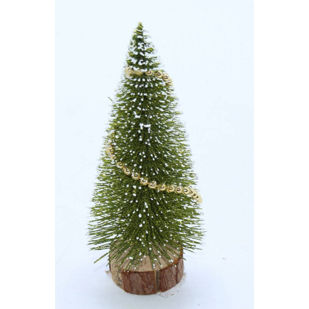 Ամանորյա զարդ տոնածառ 29սմ-ոց, փայտե գերանի վրա, զույգ ծառ