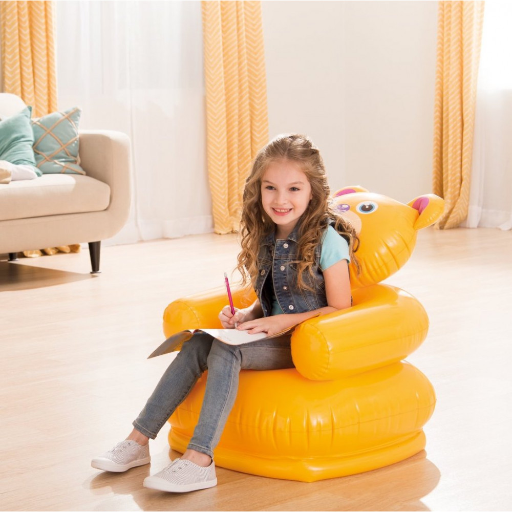 Intex ապրանքանիշի HAPPY ANIMAL փչվող աթոռը, ի շնորհիվ հարմարավետ դիզայնի և գունային բազմազանության, կլինի անփոխարինելի տարբերակ ձեր երեխաների համար: