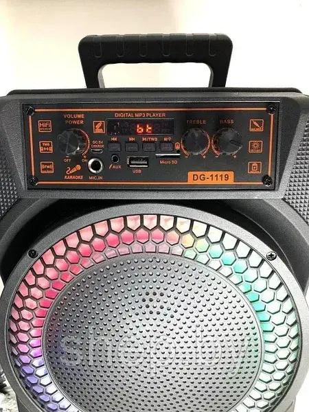 ?Bluetooth բարձրախոս DG - 1119 հեշտությամբ և ինտուիտիվ է հեռակառավարման վահանակի միջոցով (ներառված է) ?Դյուրակիր, ինքնավար, ոճային դիզայնով և լավ ձայնային բարձրախոս DG - 1119-ը կդարձնի ձեր հանգիստն ավելի պայծառ և շատ հաճելի պահեր կպարգևի ձեզ և ձեր սիրելիներին: