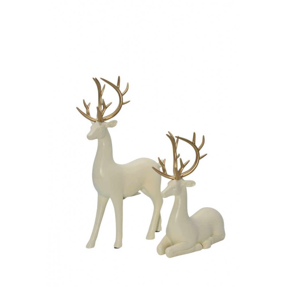 Հուշանվեր արձանիկ եղջերուների զույգ 2-ոճի գույնը սպիտակ բեժ 30սմ և 20սմ-ոց նստած
