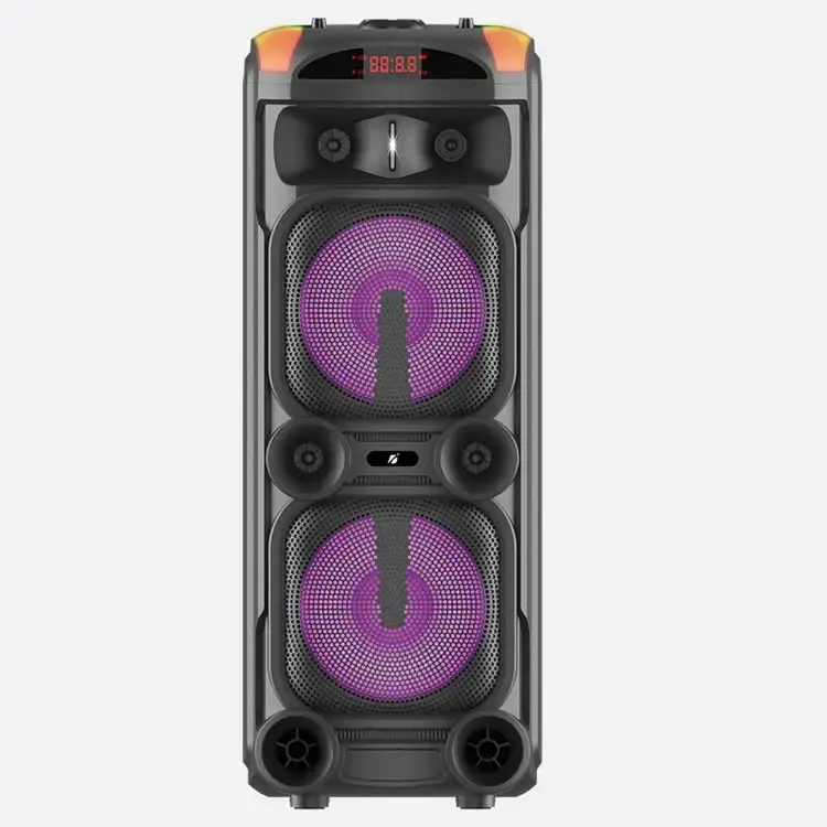 Երկակի 8 դյույմանոց 30 Վտ բարձրախոսներ հզոր ձայնի համար Bluetooth 5.0 կայուն անլար հոսքի համար Միացման տարբերակներ. USB, TF քարտ, TWS, LINE IN RGB լույսեր