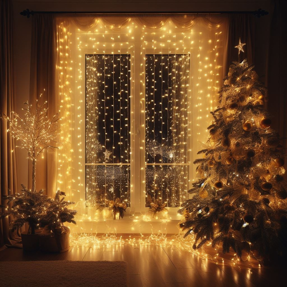 Լույս ամանորյա 2,5մ*7մ 2500 լամպ LED,սև լար, դեղին երանգ