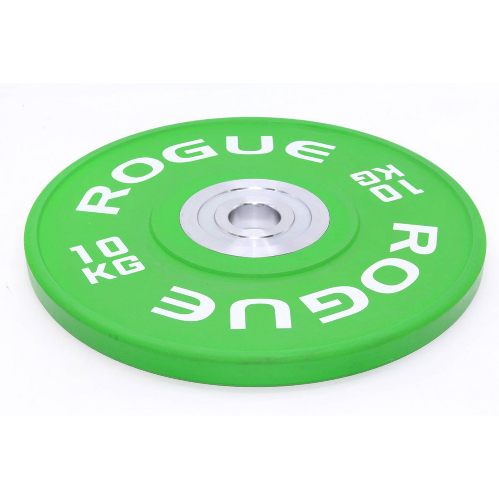 Մարմնամարզական ծանրաքար ռետինապատ գունավոր ROGUE 10կգ-ոց քաշով, մետաղե նեղ օղակով