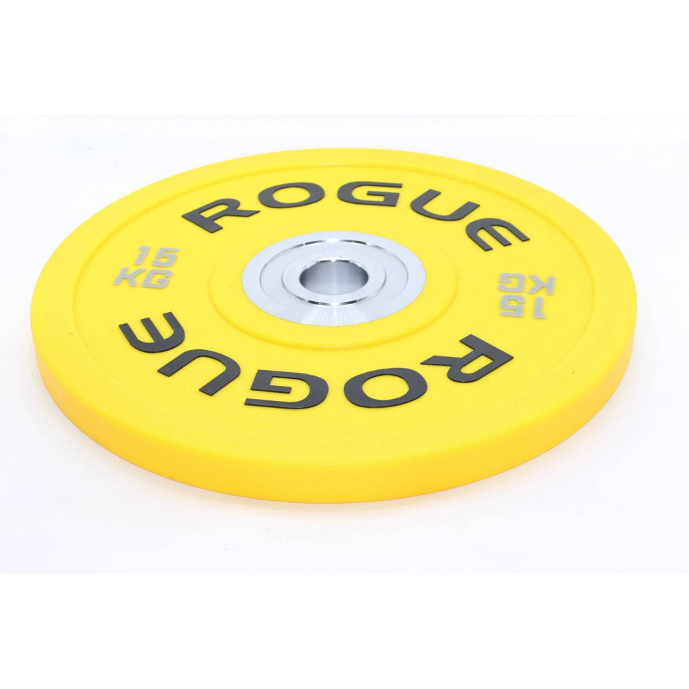 Մարմնամարզական ծանրաքար ռետինապատ գունավոր ROGUE 15կգ-ոց քաշով, մետաղե լայն օղակո