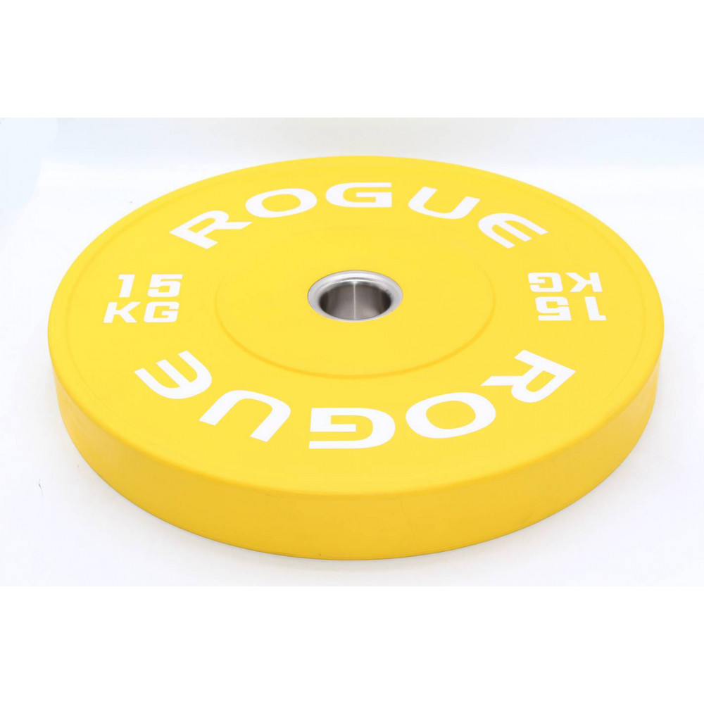 Մարմնամարզական ծանրաքար ռետինապատ գունավոր ROGUE 15կգ-ոց քաշով, շայբա օղակ