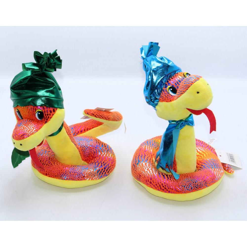 Փափուկ խաղալիք օձ 20սմ-ոց, կանաչ կապույտ գլխարկով