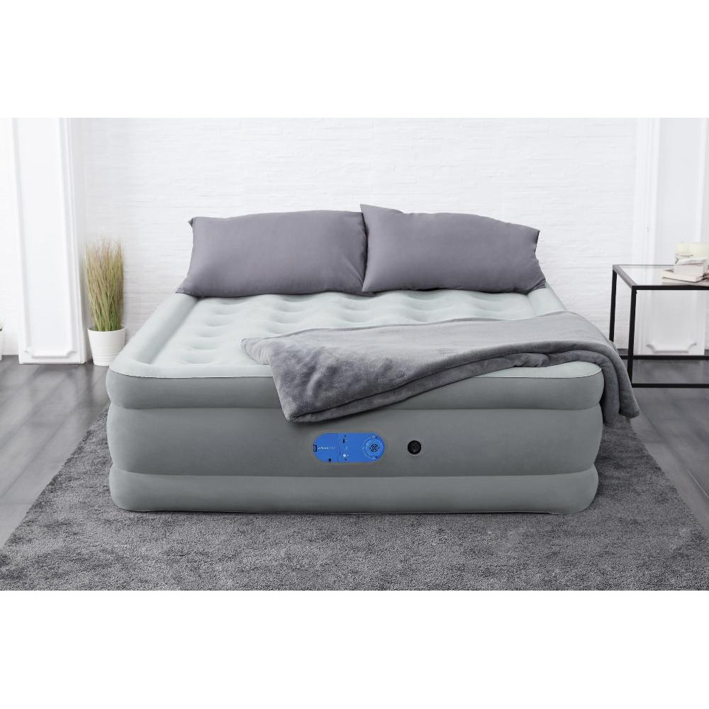 Кровать поставляется со встроенным электронасосом, который позволяет за несколько минут надувать и сдувать кровать, а также дает возможность отрегулировать ее жесткость. Встроенный насос подключается к стандартной электрической розетке. При отсутствии электричества, кровать можно накачать обычным механическим насосом. Для этого кровать снабжена специальным клапаном для подключения внешнего насоса.
