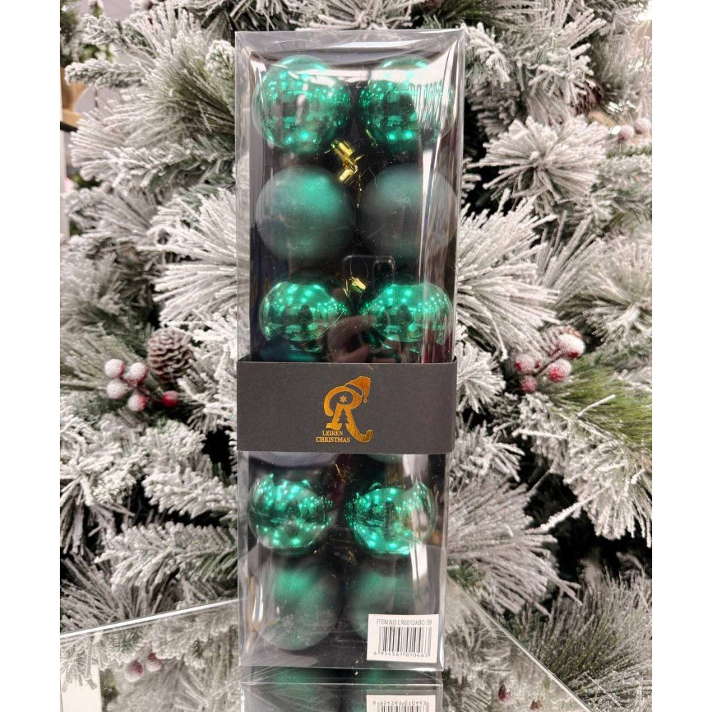 Սուրբ Ծննդյան տոնածառի զարդ գնդիկներ 12հ-ոց 6սմ-ոց տուփում երեք երանգ,սիրամարգի կանաչ