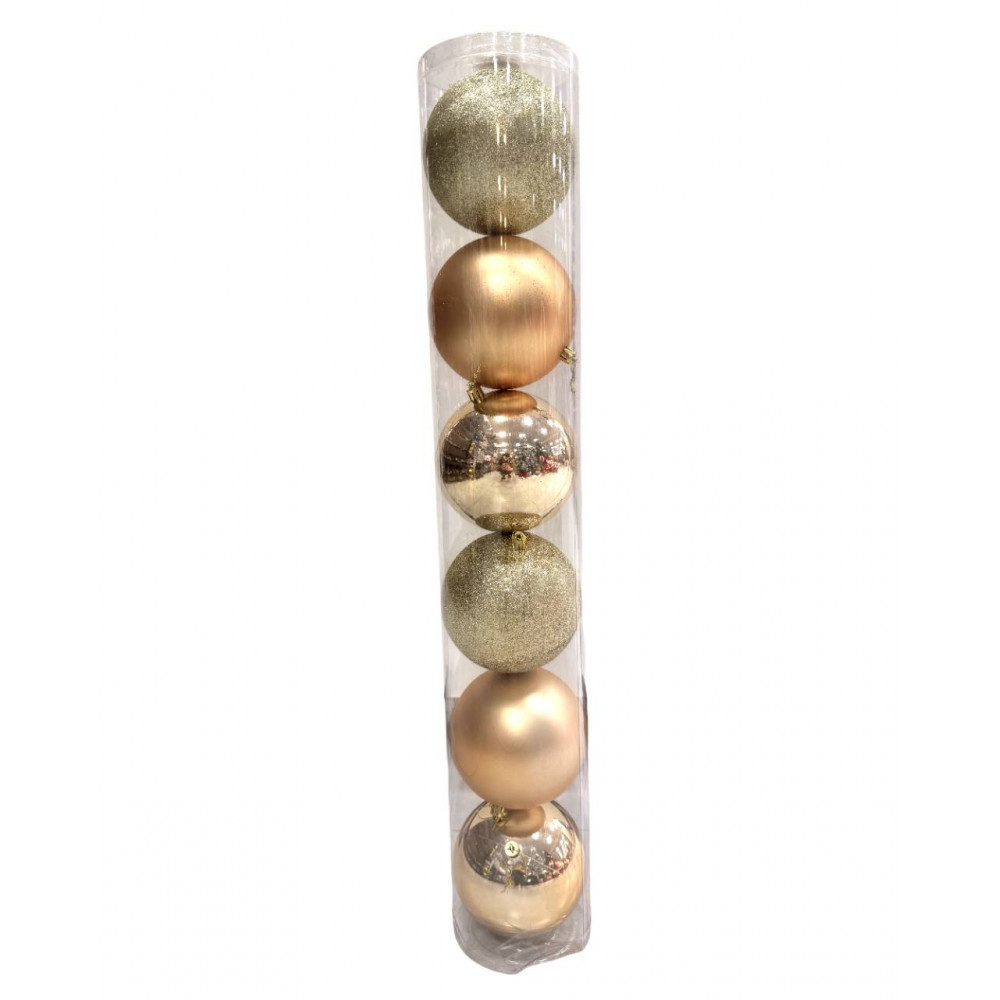 Սուրբ Ծննդյան տոնածառի զարդ գնդիկներ 6հ-ոց 12սմ-ոց, տուփում երեք երանգ, բաց ոսկեգույն