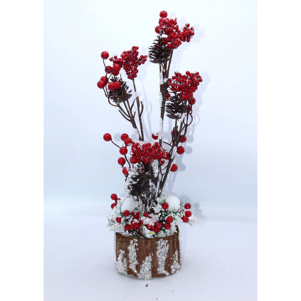 Ամանորյա զարդ տոնածառ 29սմ-ոց, փայտե գերանի վրա, զույգ ծառ