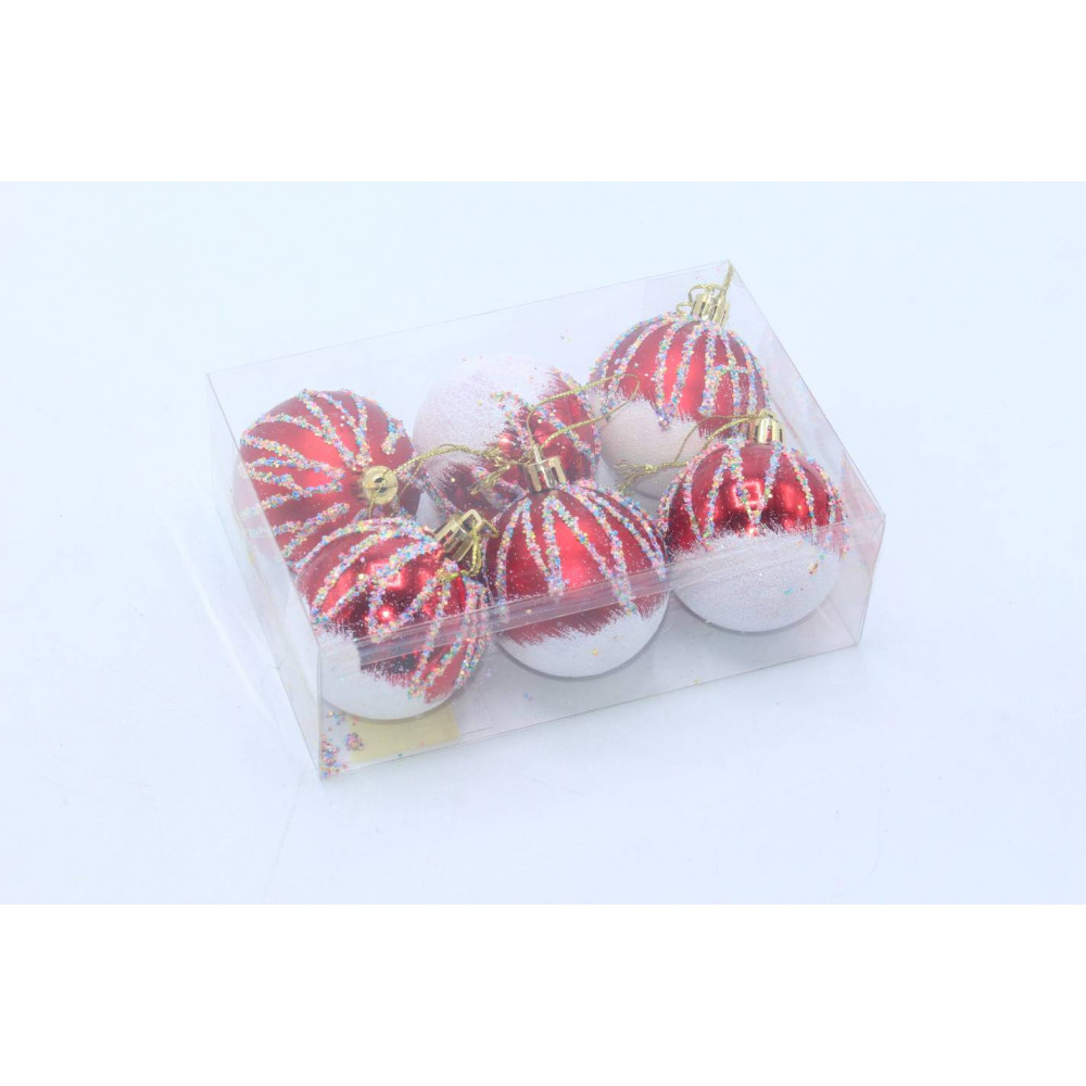Տոնածառի խաղալիք6սմ-ոց 6հ-ոց կարմիր գույն փայլային նախշե երանգ PVC թափանցիկ տուփով LR6006-62-4