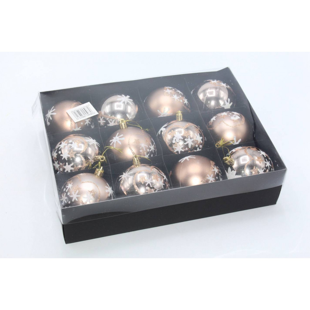 Տոնածառի խաղալիք8սմ-ոց 12հ-ոց սև տուփով, շամպայնի գույն 3երանգի + նախշեր